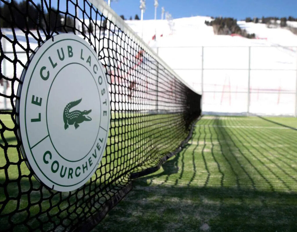 Situated at 1,850 meters above sea level, at the foot of the Émile-Allais slalom stadium and facing the INEOS Club House, the courts were developed in collaboration with Courchevel Tourisme, with support from the local municipality and the Sports Club. Set against a backdrop of pristine snow, the green playing surface showcases the Lacoste logo along the court walls. Designed to withstand alpine conditions, the courts feature a heated base powered by geothermal energy. Balls and rackets are branded with the iconic crocodile, and a co-branded apparel collection is set to launch soon.